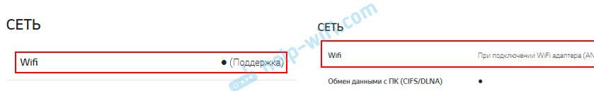 Если «–» – значит нет. Может быть еще написано: «При подключении WiFi адаптера (AN-WF500)», «Опционально», «(Поддержка)». Это значит, что нужно покупать и подключать внешний USB Wi-Fi модуль (приемник). Только после этого в телевизоре заработает беспроводное соединение.