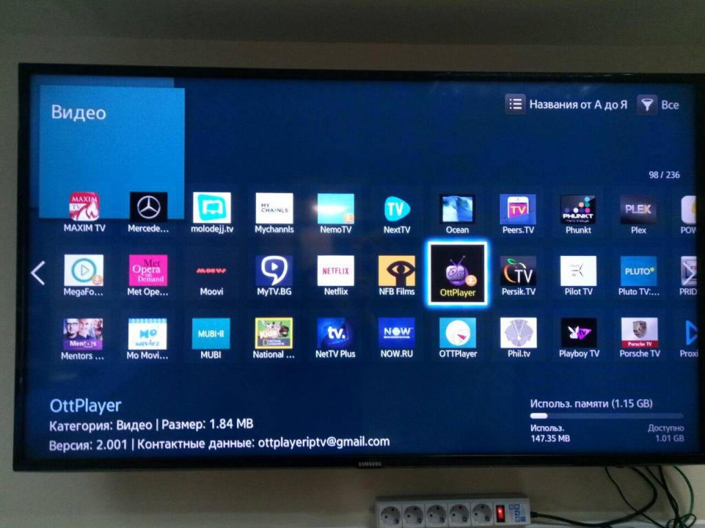 Разберём, как настроить IPTV на телевизоре Samsung Smart при помощи приложения OTT Player. Для этого потребуется его скачать с магазина и поставить на ТВ-панель. Потом проделать следующие действия: