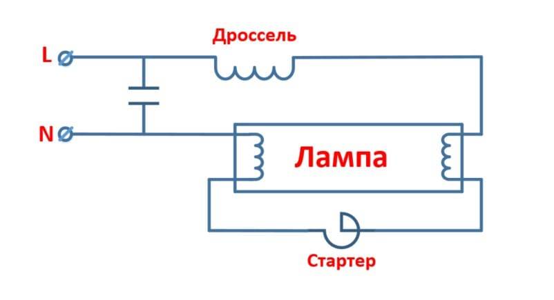 Схема старого типа ПРА для люминесцентных ламп