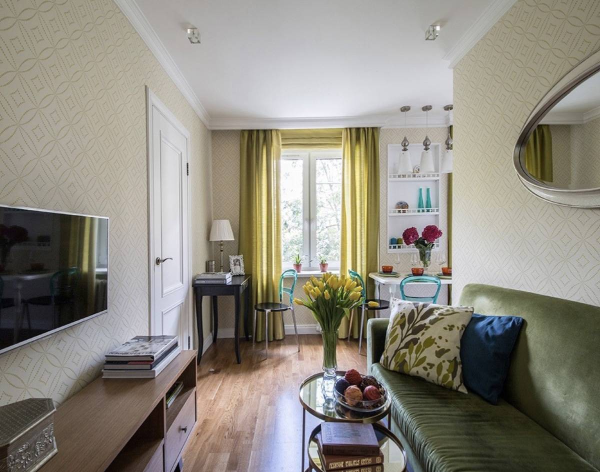 Для маленьких помещений не стоит выбирать шторы в пол. Карниз желательно располагать не намного выше самого окна. Это поможет сэкономить на количестве материала, подобрать более дорогие и красивые ткани. Декоративные элементы не всегда уместны, особенно если в остальных частях интерьера они отсутствуют.