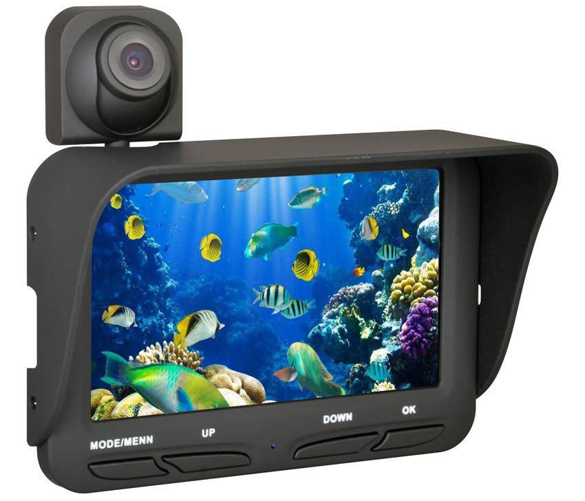 С помощью этого девайса вы сможете отслеживать все происходящее под водой! Камера имеет функцию записи, сохраняются ролики на карты памяти типа micro-SD. Длина кабеля устройства составляет двадцать метров – такую камеру можно использовать даже в довольно глубоких водоемах. В основе конструкции использованы инфракрасные светодиоды, которые не отпугивают рыбу – та их просто не замечает! Большой дисплей диагональю 4,3 дюйма позволяет подробно отследить все происходящее в воде.