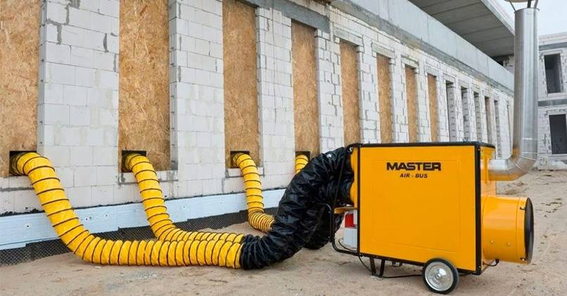 Часто в ремонтно-отделочных работах существует необходимость в дополнительной просушки помещения или материалов, уже нанесённых на стены, пол. Например, бывает, что нужно принудительно подсушить штукатурку или стяжку, наливной пол. При высокой влажности в помещении такое допустимо, но с ограничениями, поскольку растворы должны сохнуть в «естественных» условиях, при температуре от 20 градусов и не высокой влажности (обычно всё это указывается на упаковке с составами).