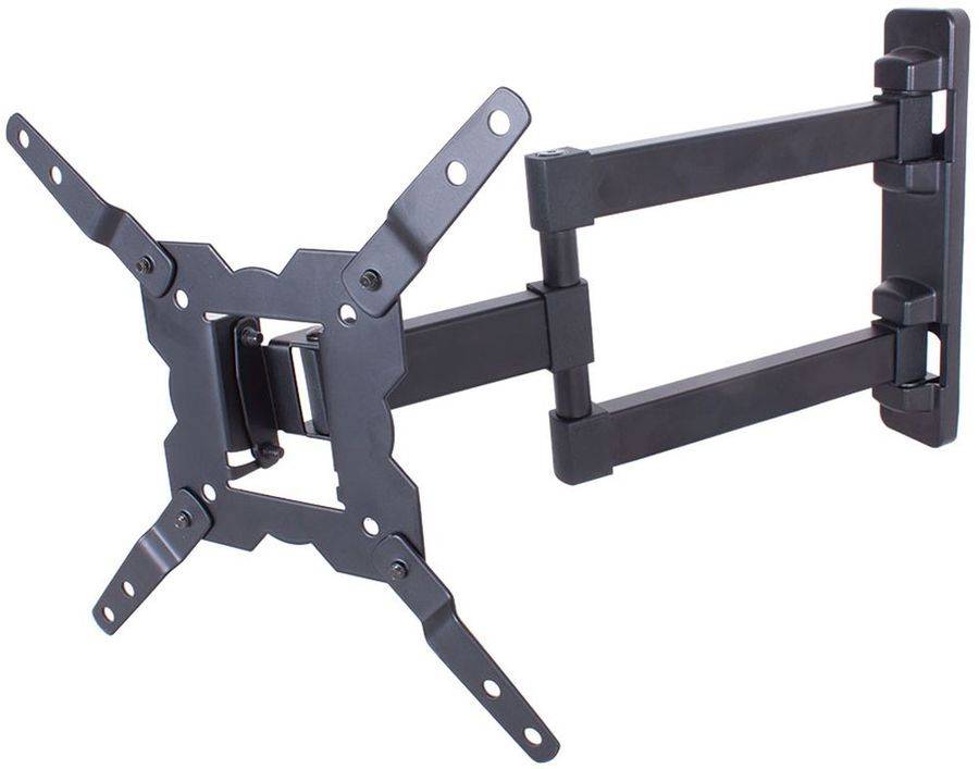 Красивый наклонно-поворотный кронштейн для маленького телевизора подходит для мониторов массой до 30 кг и диагональю 28 дюймов. Конструкция легко монтируется на стену, позволяет отодвигать ТВ от ее поверхности, разворачивать до 180° влево и вправо, а также наклонять на 15° в вертикальной плоскости. Поддерживает 2 стандарта VESA — 7,5 на 7,5 и 10 на 10 см, сделан из прочной износостойкой стали.