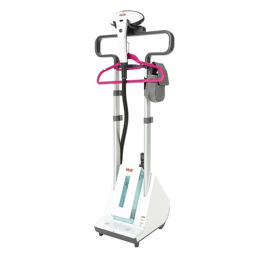 | MIE Magic Style | Мощное устройство вертикального типа; широкая функциональность и комплектация; подходит для домашнего и профессионального применения; включает утюжок и удобную двойную стойку, но габаритный и тяжелый | Мощность — 2250 Вт; объем — 1,7 л; непрерывная работа — 40 минут; нагрев за 45 секунд, подача пара – 55 г/мин; регулирование пара и автоматическое отключение | Зажим, щетка и подушечка с мелким ворсом; телескопическая стойка; отсек для насадок и сумка для аксессуаров | 15 800 рублей |