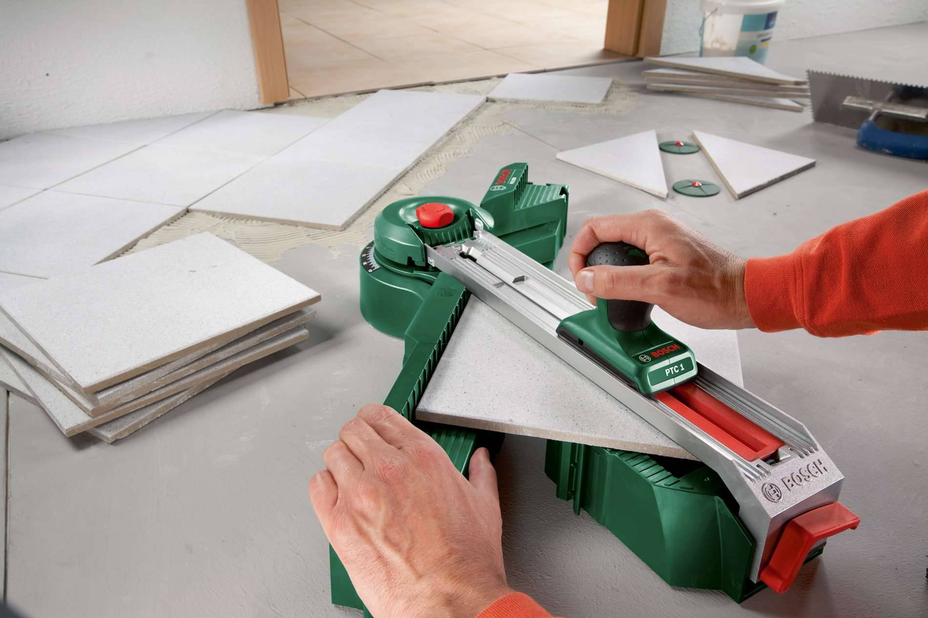Если вы занимаетесь ремонтом ванных комнат профессионально, то купите плиткорез. Они бывают механические, электрические, ручные, станочного типа. Рекомендуем выбирать, исходя из объемов работ и условий: электрический плиткорез не подойдет для резки в помещениях с высокой влажностью, станочный будет неудобно устанавливать в ограниченном пространстве.