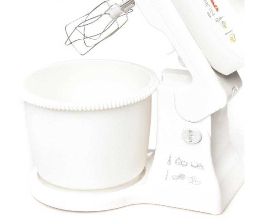 Эта модель нередко становится выбором домашних кондитеров. В ней подкупают лаконичный дизайн, тихая работа, экономный расход электричества. Мощность, несмотря на низкий показатель, также на высоте. Очень удобно, что чаша сделана с ручкой. В комплекте предусмотрена крышка, а длина сетевого шнура больше среднего. Кроме высокой цены, недостатков в модели найдено не было. Даже если в миксере что-то выйдет из строя, производитель дает 5 лет гарантии на прибор.