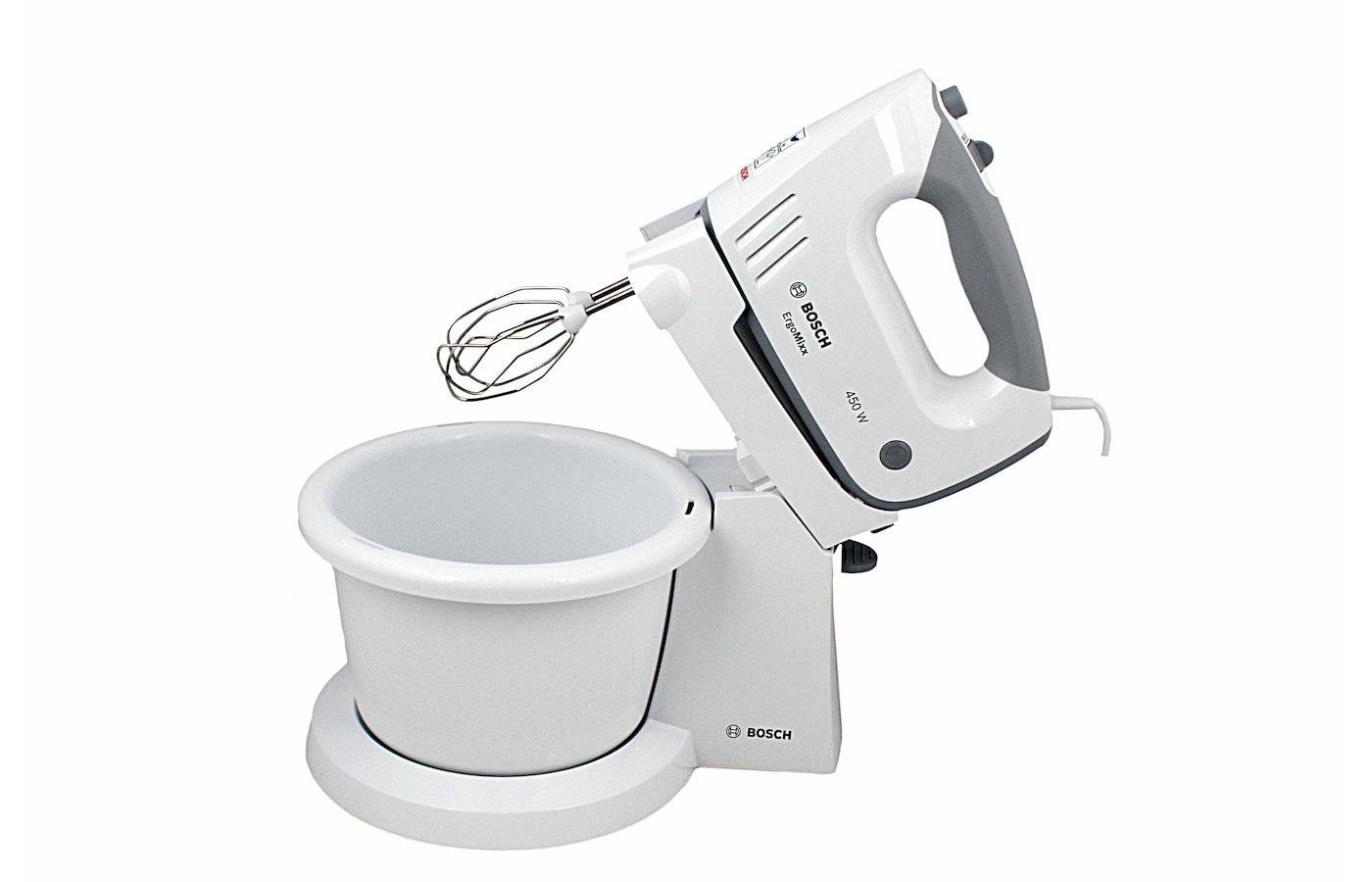 Bosch MFQ 36460 — популярная модель, достоинствами которой считается качественная сборка, удобство и доступная цена. Вместе с насадкой у миксера вращается чаша, благодаря чему продукты перемешиваются особенно тщательно. Сборка — Словения, поэтому к качеству конструкции вопросов не возникает. Вместимости чаши в 3 литра хватает для кулинарных задач, а 5 скоростных режимов позволяют подобрать оптимальную скорость для разных типов блюд.