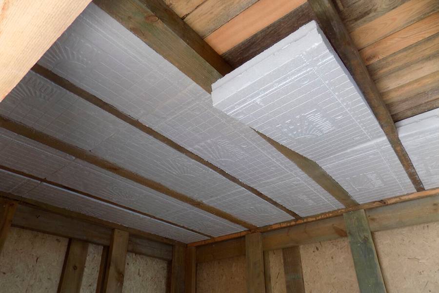 Пенопласт был бы хорош для потолка, но он горюч и при некачественном изготовлении выделяет вредные вещества при нагреве.