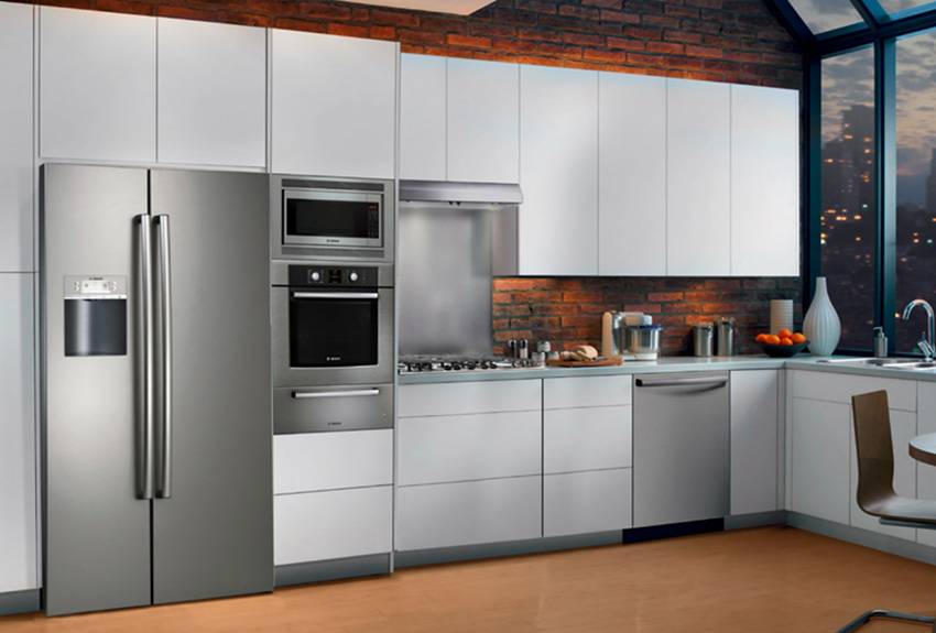 Например, холодильник будет невозможно установить на другое место. Это считается основным минусом такой техники. Зависимую технику необходимо устанавливать только друг над другом: духовку под варочной поверхностью, так как они соединены между собой проводами и имеют один механизм управления. Чтобы решиться установить зависимую бытовую технику, необходимо тщательно продумать все составляющие будущей кухни.