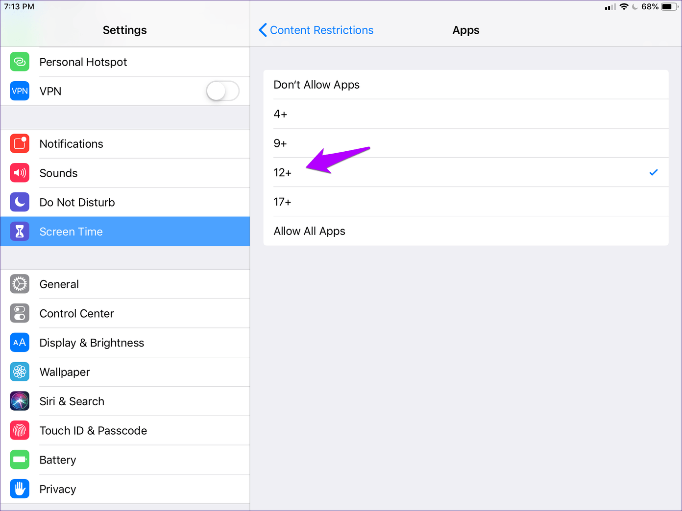 Шаг 4: Выберите возрастной рейтинг 12+ (или ниже), а затем возвращайтесь назад.