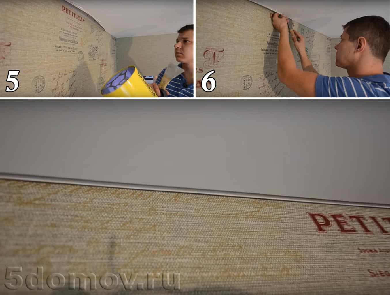 Чтобы заправить полотно обратно, его нужно немного разогреть бытовым феном: благодаря этому материал наберет необходимую эластичность для растягивания. Вставленную внутрь профиля кромку материала сверху фиксируют накладной планкой. Если по окончании процедуры на декоративной поверхности появятся складки, их нужно разогреть феном для полного разглаживания.