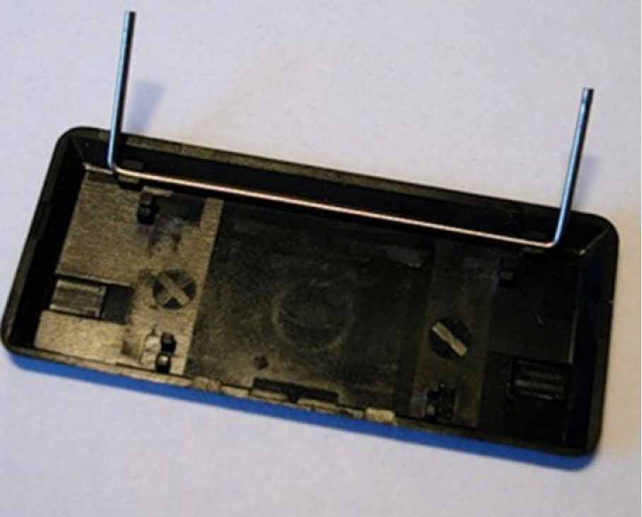 Прежде чем браться устанавливать клавишу в те пазики, нужно зафиксировать «раскладушку» в приподнятом состоянии с помощью немного разогнутой скрепки: