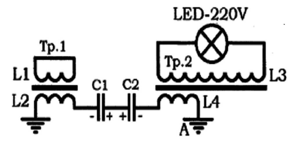 Название метода произошло от фамилии ученного, предложившего такой способ получения электричества из земли. Для этого используется двойное пассивное заземление без каких-либо активаторов, два конденсатора и катушки индуктивности. Схема Белоусова приведена на рисунке ниже:
