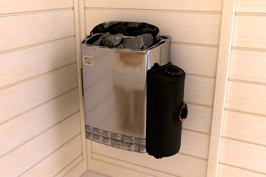 Как уже было сказано выше, электрическая печь больше подходит для небольших помещений. Ее примерная мощность рассчитывается по формуле – 1кВт на 1 м3, но лучше приобретать с небольшим запасом (до 5 кВт), ведь многое зависит от теплоизоляции бани и работы вентиляции.