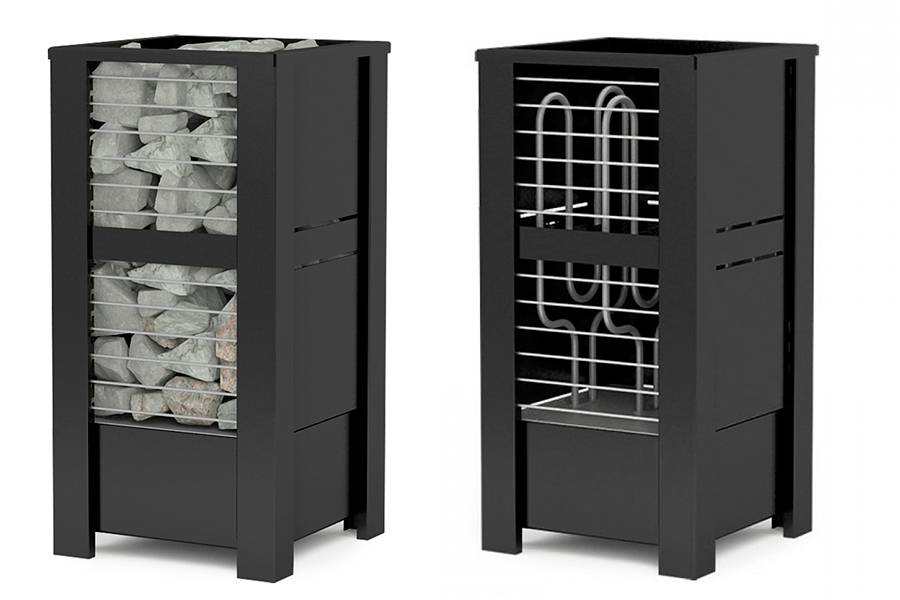 Цилиндрическая печь в виде сетки, заполненной камнями. Управление сосредоточено в нижней части. Вес каменки — 250 кг. При мощности 15 кВт печь способна обогреть помещение до 26 м3.
