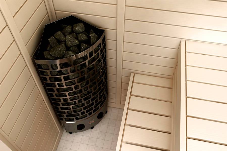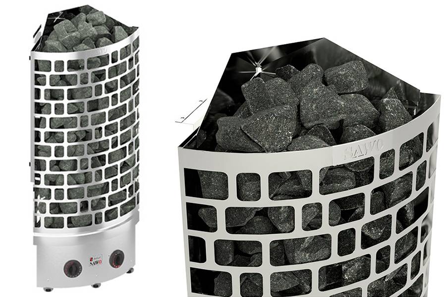 Растущую популярность приобретают треугольные конструкции. По мнению владельцев таких печей, они отлично вписываются в парилку, экономят место и одновременно повышают безопасность. Угол классически является мертвой зоной. Расположенную здесь треугольную (или более сложной формы) печь трудно задеть при перемещении.