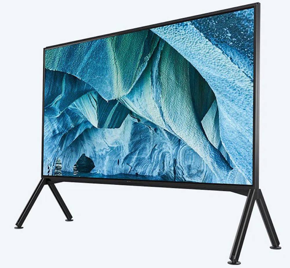 Жидкокристаллический телевизор Sony серии ZG9 диагональю 98 дюймов имеет разрешение 8К с поддержкой HDR. Он содержит больше точек, чем в телевизорах с разрешением 4К, и оптимизирован для обработки 35 млн пикселей.