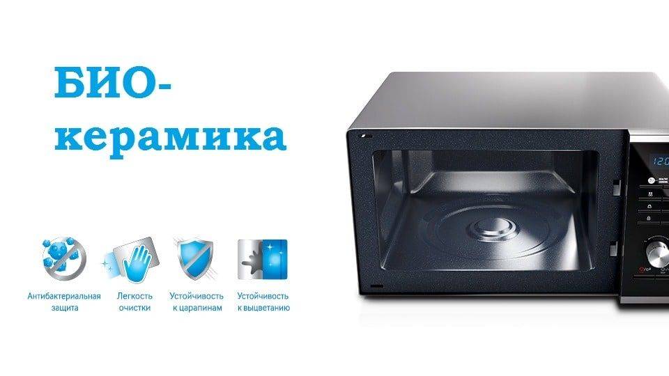 | Покрытие 2. Керамика Керамическое покрытие микроволновки прослужит гораздо дольше эмалированного, потому что из-за гладкой поверхности к нему хуже пристаёт жир и грязь. Чистить керамику лучше мягкими тряпочками и губками, так как жёсткие щётки могут оставить на покрытии заметные сколы и внутреннюю поверхность нужно будет красить | |