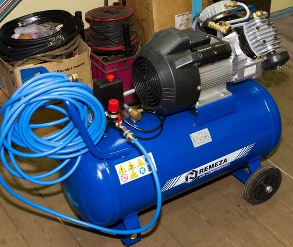 К преимуществам электрических компрессоров следует отнести простоту их конструкции, они более экономичны в эксплуатации и обслуживании. Среди таких компрессоров на современном рынке представлены как стационарные, так и мобильные модели, транспортируемые при помощи специального шасси, которым они оснащены. Ограничением для использования электрических установок является также то, что для эффективной работы пескоструйного аппарата требуется компрессор, двигатель которого обладает мощностью в пределах 22–100 кВт. Подключение такого двигателя способна выдержать не каждая электрическая сеть.