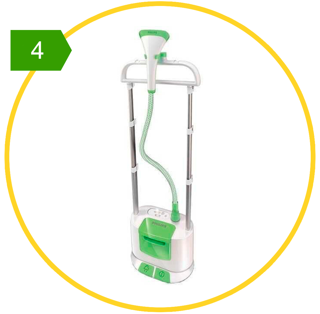 Удобная и функциональная модель для дома. В комплекте содержится съемный резервуар для воды, большой сматывающийся шнур, отделение для хранения насадок. По сравнению с другими отпаривателями, Philips обладает небольшой ценой, но лучшими характеристиками.