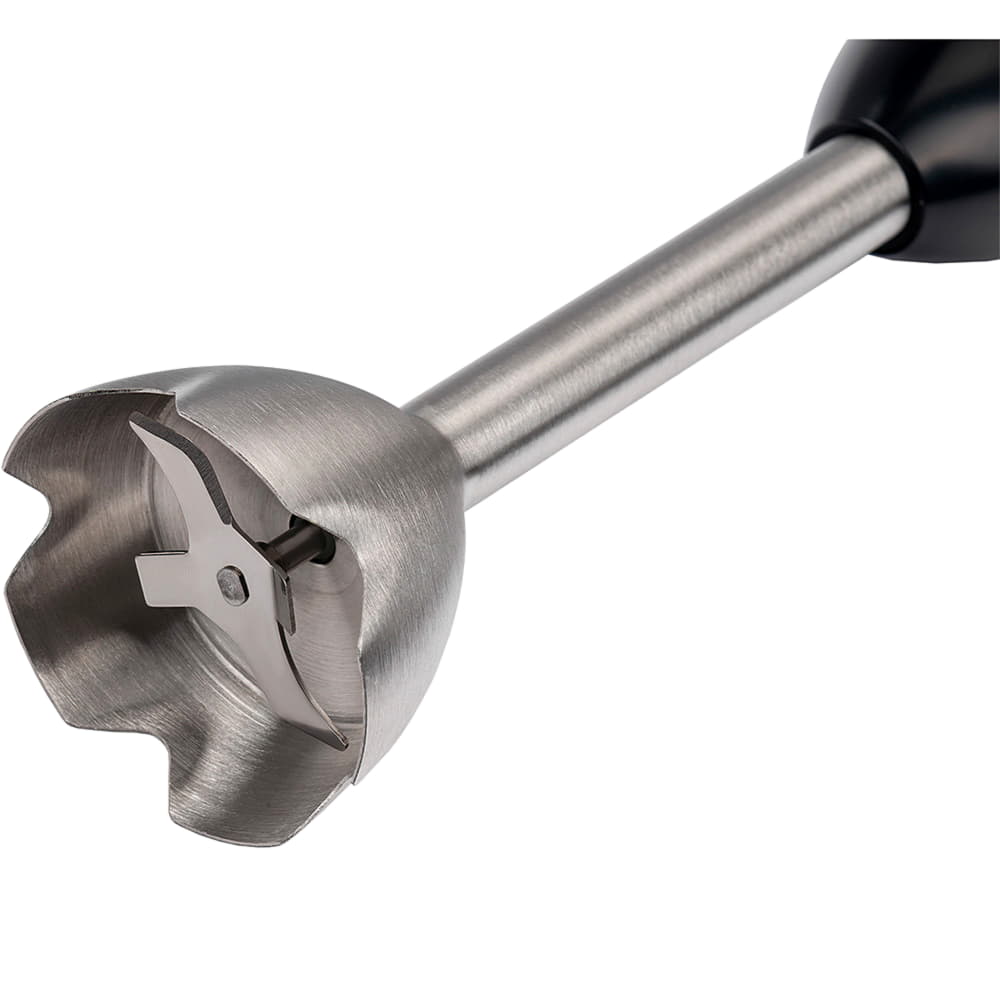 Погружная насадка или как её часто называют — «нога», подходит для приготовления крем-супов, соусов, коктейлей. Изготовители предпочитают использовать в качестве материала хромированную сталь, что положительно сказывается на качестве насадки. Кстати, металлическая насадка удобна еще и тем, что спокойно реагирует на работу с горячими продуктами.
