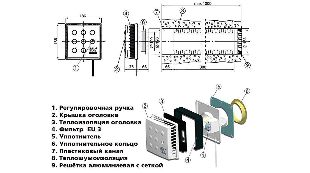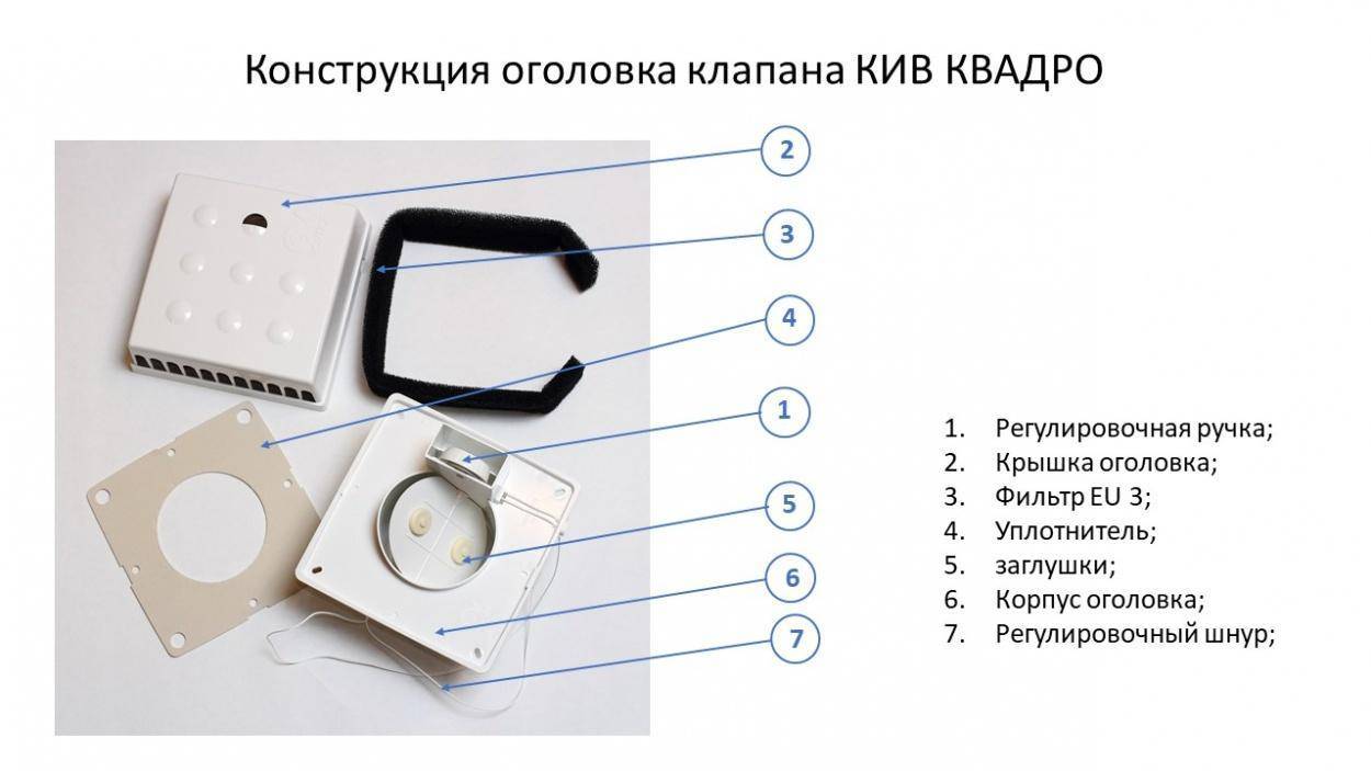 Далее рассмотрим более подробно об основные элементы конструкции приточного клапана:
