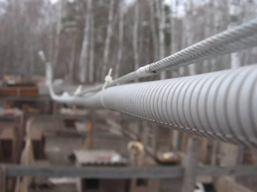 Преимущества способа – большая скорость монтажа, удобство осмотра и обслуживания. Недостаток – влияние на оформление территории, необходимость применения прочного и стойкого к внешним факторам проводника, а иногда и обязательной прокладки стального монтажного троса.