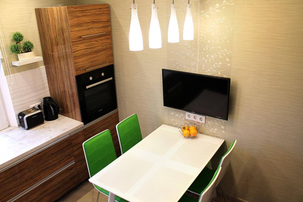 Кухня – это, как правило, небольшое помещение. Конечно, есть владельцы загородных домов, которые могут позволить себе сделать большую кухню, но рядовые обыватели – это обладатели стандартных городских квартир. Размер экрана выбирается, исходя из расстояния от него до глаз. Его следует разделить на 2,5, чтобы получить оптимальную диагональ. Чаще всего, максимальный размер экрана составляет 28-32 дюйма.