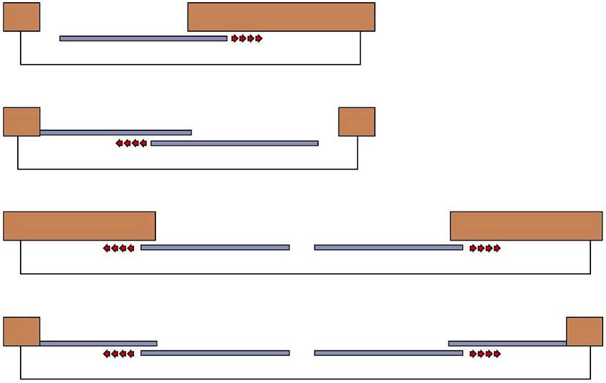 Компланарная конструкция для раздвижных дверей является универсальным и удобным вариантом, совмещающим в себе несколько механизмов. Она предполагает наличие отдельных полозьев для каждой створки двери. При полном открывании дверного проема каждая часть наезжает на другую, ложась поверх нее. Конструкции могут иметь два или три полотна. В зависимости от этого устанавливают двух- или трехполозную направляющую.
