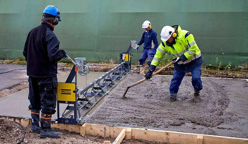 - на открытой стройплощадке. Используется виброрейка плавающая бензиновая.