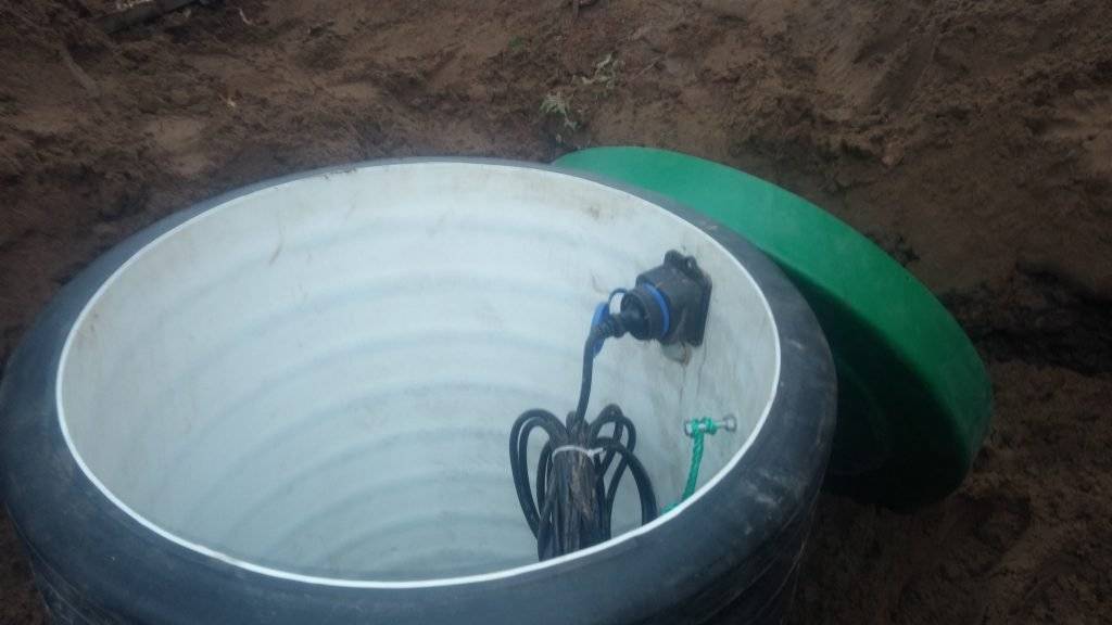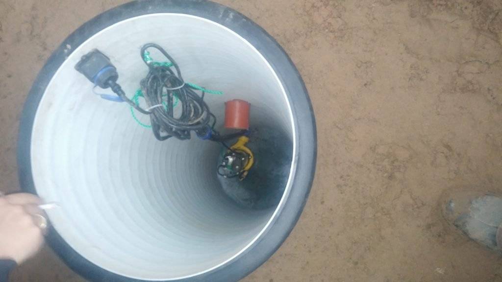 Так как туба узкая, насос в нашу КНС мы установили на первом этапе и опускали тубу уже с установленным насосом.