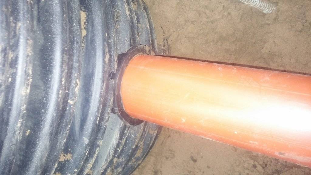 Отводящая труба ПНД 32 в доме заведена в 50 канализационную серую трубу через переходную резинку, обеспечивающую надежное крепление и герметичность.