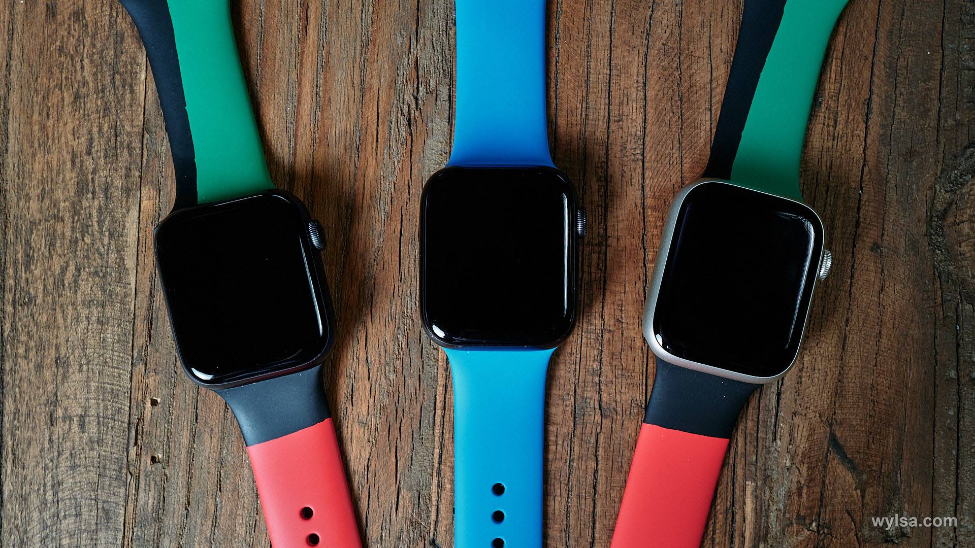 Смотрите: слева Apple Watch Series 7, по центру SE, а справа — Series 6: