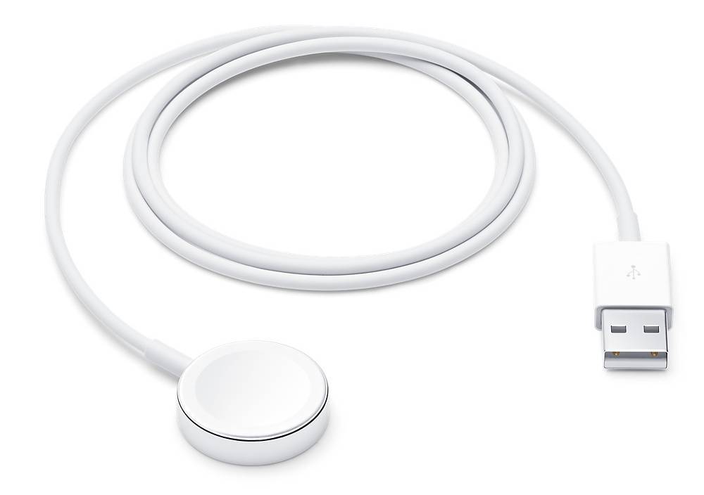 Однако с новыми часами Apple решила позаботиться об экологии и отказаться от комплектного адаптера питания. В коробке вы найдёте только часы, ремешок, а также магнитную зарядку с кабелем USB-A: