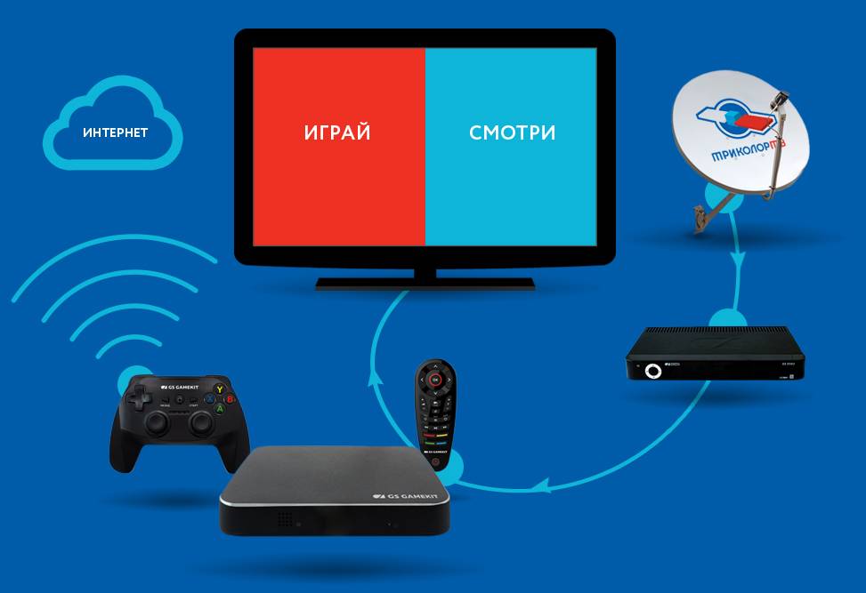 Услуга «Триколор Онлайн» доступна на приёмном оборудовании моделей GS C593, GS AC790 при использовании программного обеспечения версии 02.01 и выше. Доступность услуги зависит от тарифа формирования абонентской линии.