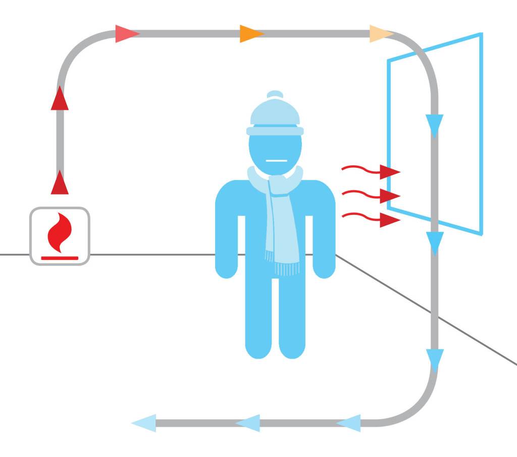 Простыми словами, в конвектор вмонтирован нагревательный элемент, который делает вокруг себя воздух горячим. Нагретый воздух, начинает перемещаться вверх, освобождая место холодным потокам воздуха. Такой “круговорот” называется естественной конвекцией. Надеемся мы ответили на вопрос, что такое конвектор. Более наглядно, с этим нехитрым процессом, вам поможет разобраться картинка: