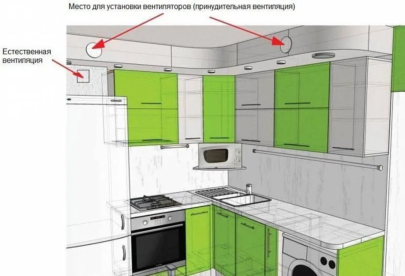 Пример размещения вентиляционных шахт на кухне Источник blog-potolok.ru Пластиковые трубы для вентиляции – это оптимальное решение для дачных зданий. Их несложно монтировать и при необходимости можно эргономично включить в дизайн комнаты.