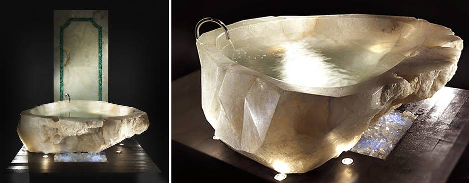 Самая дорогая в мире ванна изготовлена в Италии из цельного куска горного хрусталя и оценивается в 800 000 долларов. Этот минерал переправляли в Европу из Бразилии. Были сделаны две очень похожие ванны, одну из которых купил русский олигарх, пожелавший остаться инкогнито. Вторая «близняшка» до сих пор выставлена на продажу.