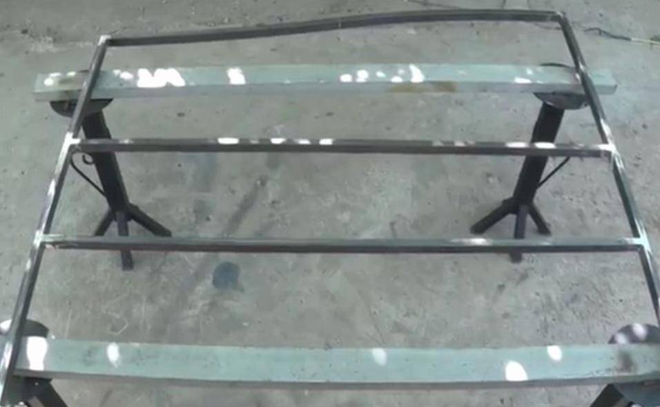- Первым делом, согласно инструкции, изготовьте металлический каркас или раму. Она делается из стального профиля, которые нужно подогнать по размеру и уложить на ровную поверхность. Выровняйте элементы по уровню и проверьте диагонали. На углах прихватите профили сваркой.