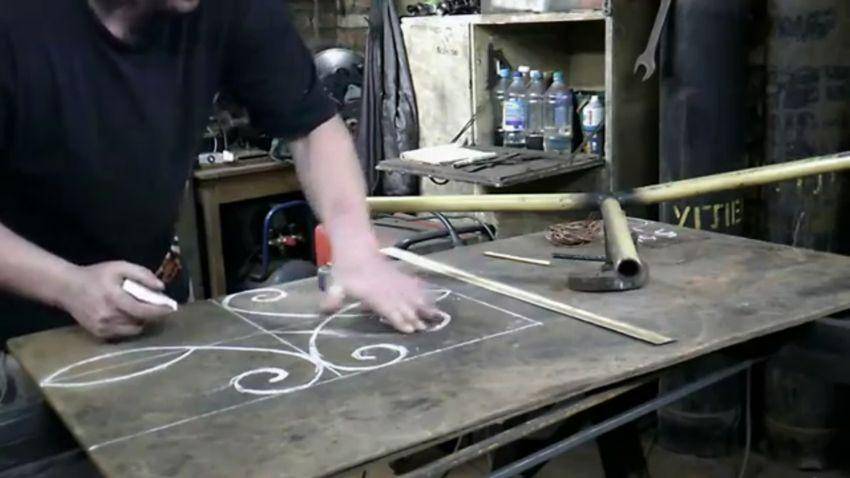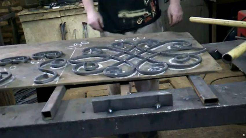 Процесс сборки из готовых элементов начинают со сварки каркаса из стального листа. Его толщина зависит от количества кованых деталей: чем их больше, тем толще должна быть сталь. Затем следует сборка по схеме: