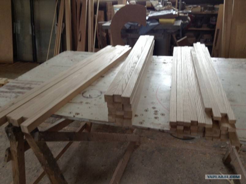 - Изготовление основания. Прикрепить к боковинам плоскую планку, на которой зафиксировать рейки (ламели) на расстоянии 3 см друг от друга.