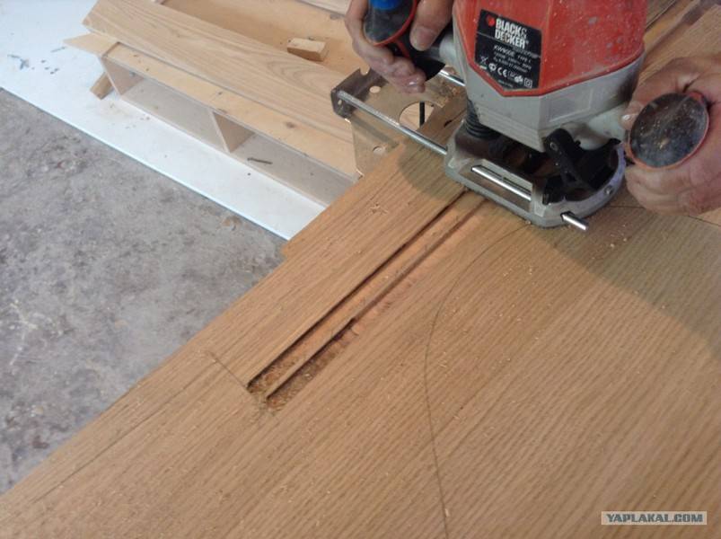 Теперь о лестнице. Чтобы спускаться по ней не оказалось неловко и больно, немного обработайте края перекладин ручным стругом или шлифовальной машинкой. Такая процедура придаст им аккуратный вид:
