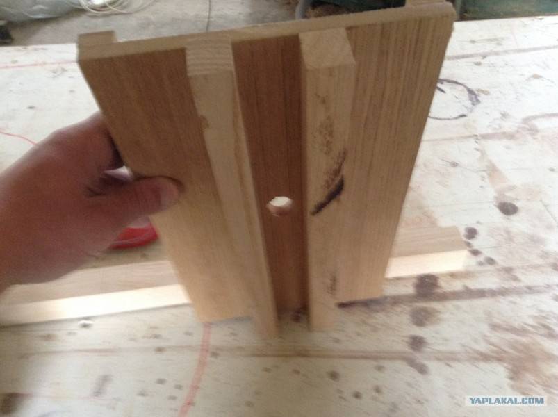 Установив вторую часть, скручиваем конструкцию. Посередине надо установить упорную планку, которая будет жестко держать обе боковинки и не даст им раздвинуться.