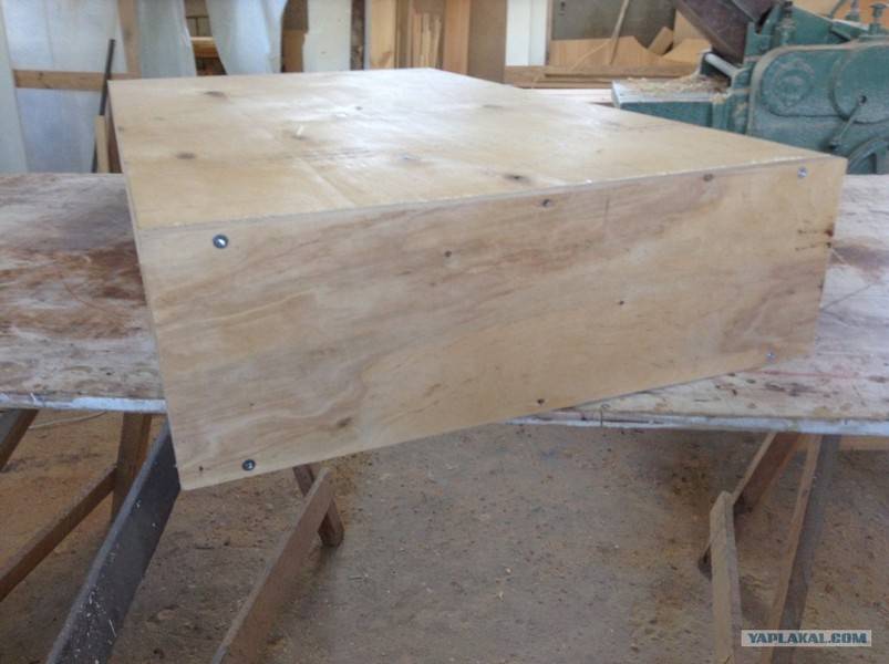 - Изготовление каркаса. В соответствие с чертежом подготовить 2 поперечные доски шириной 15 см длиной 166 см, 2 боковые длиной 87 см. Собрать из них коробку, проверив прямоугольность с помощью треугольника.