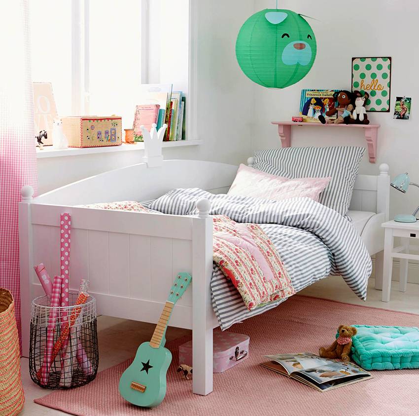 На основе той же конструкции сделана кровать для девочки. По форме перила проще, работы с ними меньше, но сложнее с покраской. Так что тоже свои моменты.