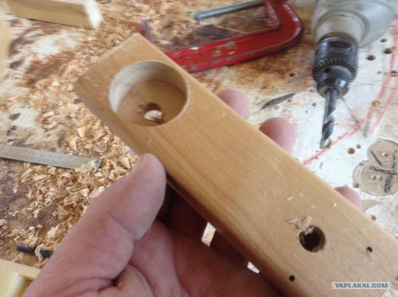 Края получились далеко не идеальными, так что хорошо шлифуем их машинкой или вручную. Затем приступаем к выпиливанию выемок, отверстий и т.д. Техника традиционная — используем дрель, просверливая одно отверстие возле другого, потом перемычки подпиливаем. Неровный край шлифуем любым доступным способом, скругляя его, причем и снаружи и изнутри все должно быть ровно и гладко.