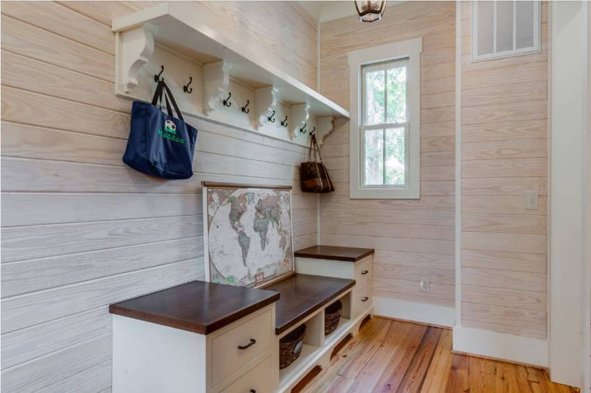 Просматривая фото вешалок в прихожей, можно заметить, что в квартирах, оформленных в скандинавском стиле, лофт или кантри, дерево искусственно состаривают. Для этой цели применяют технику декупажа, наждачную бумагу или специальную краску, которой покрывают поверхность. Для классических интерьеров прихожей изделие декорируется кожаными вставками, которые гармонично дополняют интерьер и создают уникальную атмосферу.