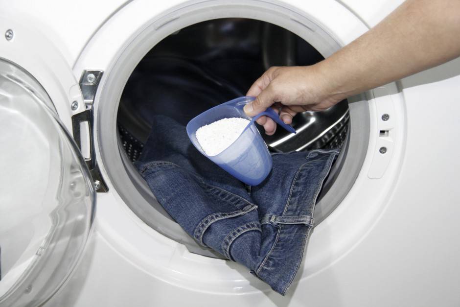 - Гранулы стирального порошка, попадающие на вещи темного цвета, могут оставлять светлые следы.