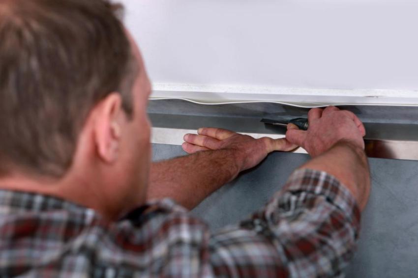 Настилать линолеум можно тремя способами: без приклеивания, с фиксацией материала двусторонним скотчем и при помощи клея. После укладки излишки возле стен срезают и устанавливают плинтуса. Рекомендуется между линолеумом и стеной оставлять небольшое расстояние.