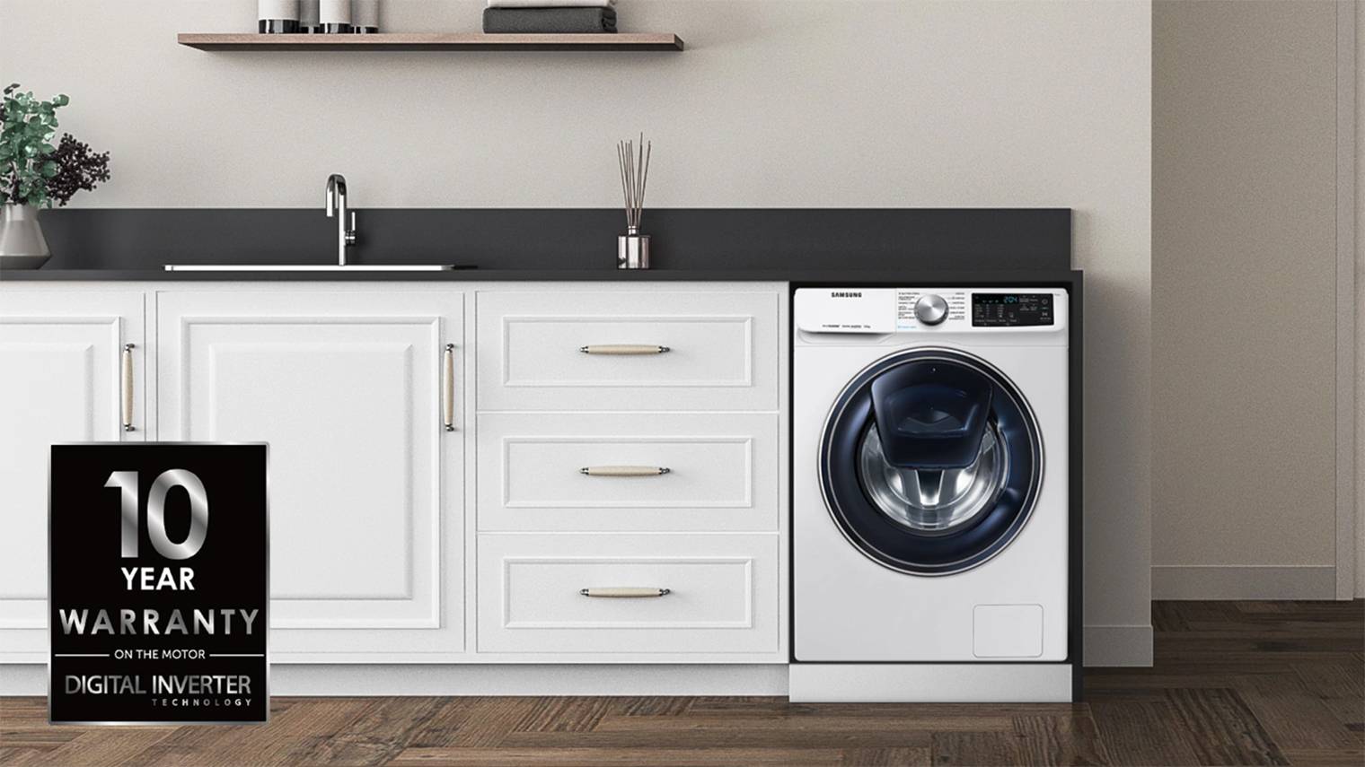 Кратко о плюсах: Супер инновационная и технологическая стиральная машина в линейке Samsung. Дверца Add Wash помогает добавить одежду или моющее средство в любой момент стирки. Более 14 режимов стирки, среди которых очистка паром, самоочистка, стирка спортивных вещей и синтетических тканей, а также многое другое. Умная цифровая «начинка» машинки помогает находить неисправности при помощи специального приложения на Android и iOS. Элегантный и стильный дизайн корпуса станет украшением любой ванной комнаты, прачечной или даже кухни.